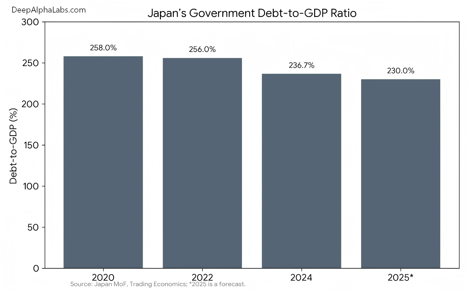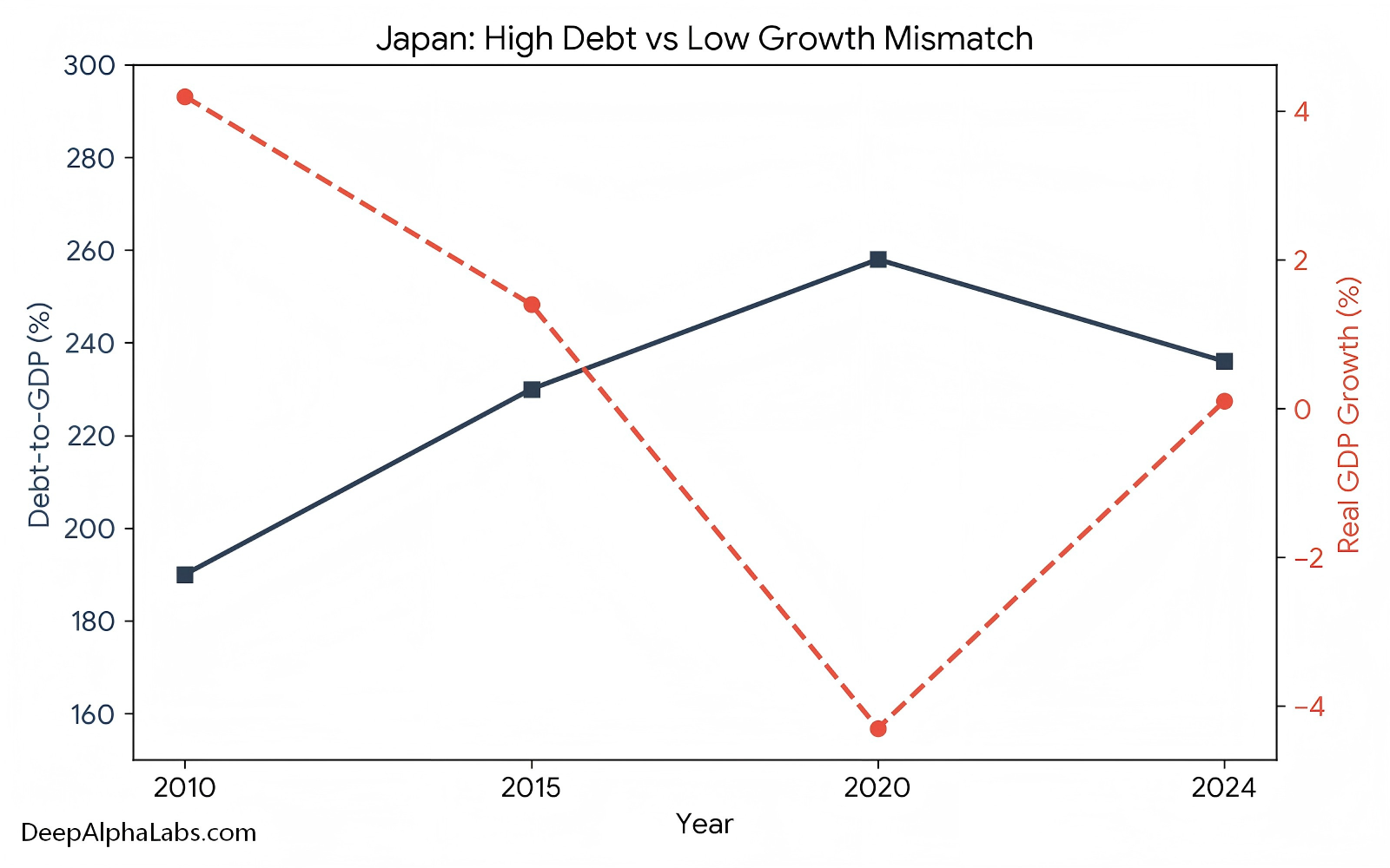 Japan faces a complex macro risk profile defined by extreme public debt, chronic low growth, rapid population aging, and structural pressure on its core automotive industry.