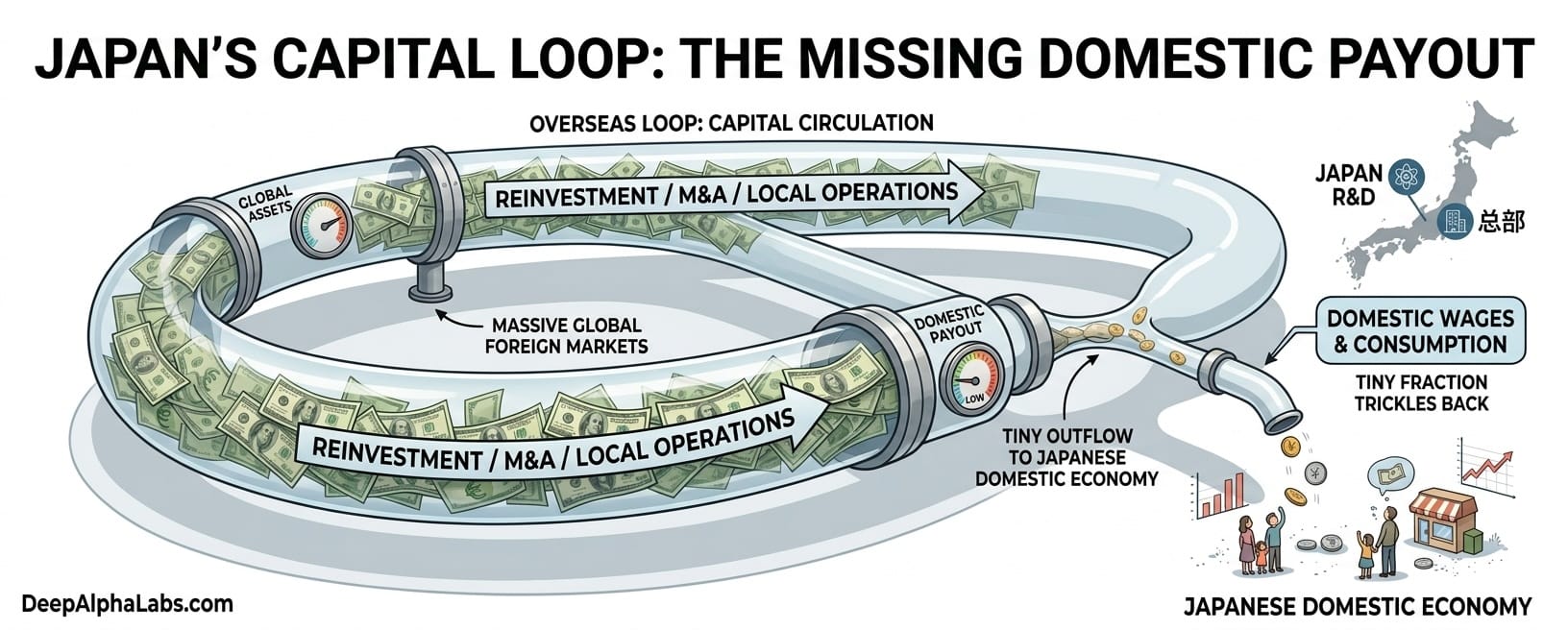 2. The Money Loop: Why the Riches Don't Come HomeIf the market dependence is the "what," the "Money Loop" is the "why." Japanese companies have spent decades building a massive web of assets abroad. By 2025, they owned over 400 trillion yen in net foreign assets.But here’s the kicker: the money stays out there. It’s a "broken loop."