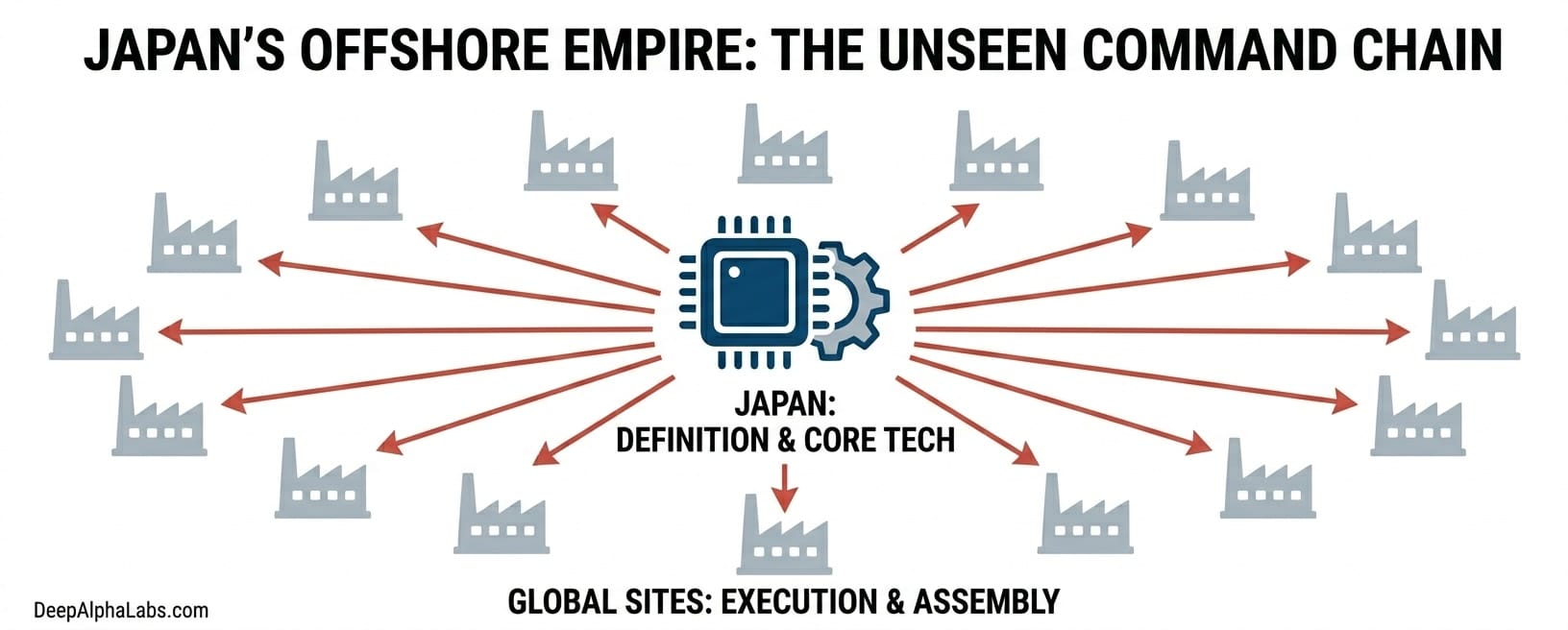 But if you look under the hood, there’s a simple, slightly scary truth: Japan’s economy has moved out. Everything—the production, the cash, the customers—is happening somewhere else. Japan itself has turned into a high-tech "headquarters." It’s the R&D lab, the "Mother Factory" for top-tier tech, and the control tower for global cash.