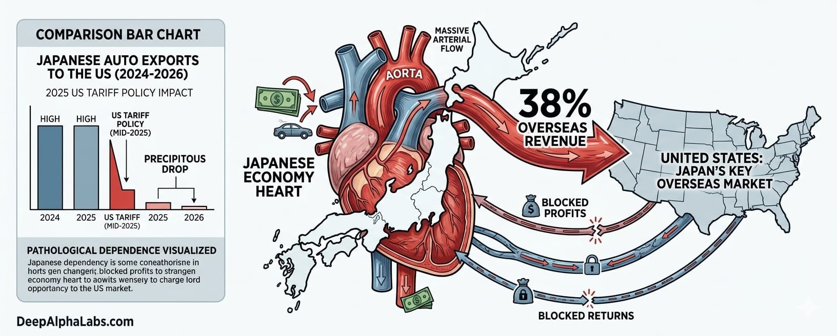 Japan depends on foreign buyers more than almost any other major economy. If you look at their paycheck, about 38% of all the money Japanese companies make overseas comes straight from the United States. America isn’t just a partner; it’s the lifeblood.This is especially true for cars. More than a third of everything Japan sends to the U.S. is autos or parts. When America sneezes, the Japanese car industry catches a deadly cold. In 2025, when the U.S. hiked tariffs on imported cars, Japan’s data went off a cliff. Auto exports to the U.S. dropped nearly 23% in six months. Toyota’s profits tanked by 44%, and Mazda went from making millions to bleeding cash. It shows you how fast a policy change in D.C. can wreck a boardroom in Tokyo.